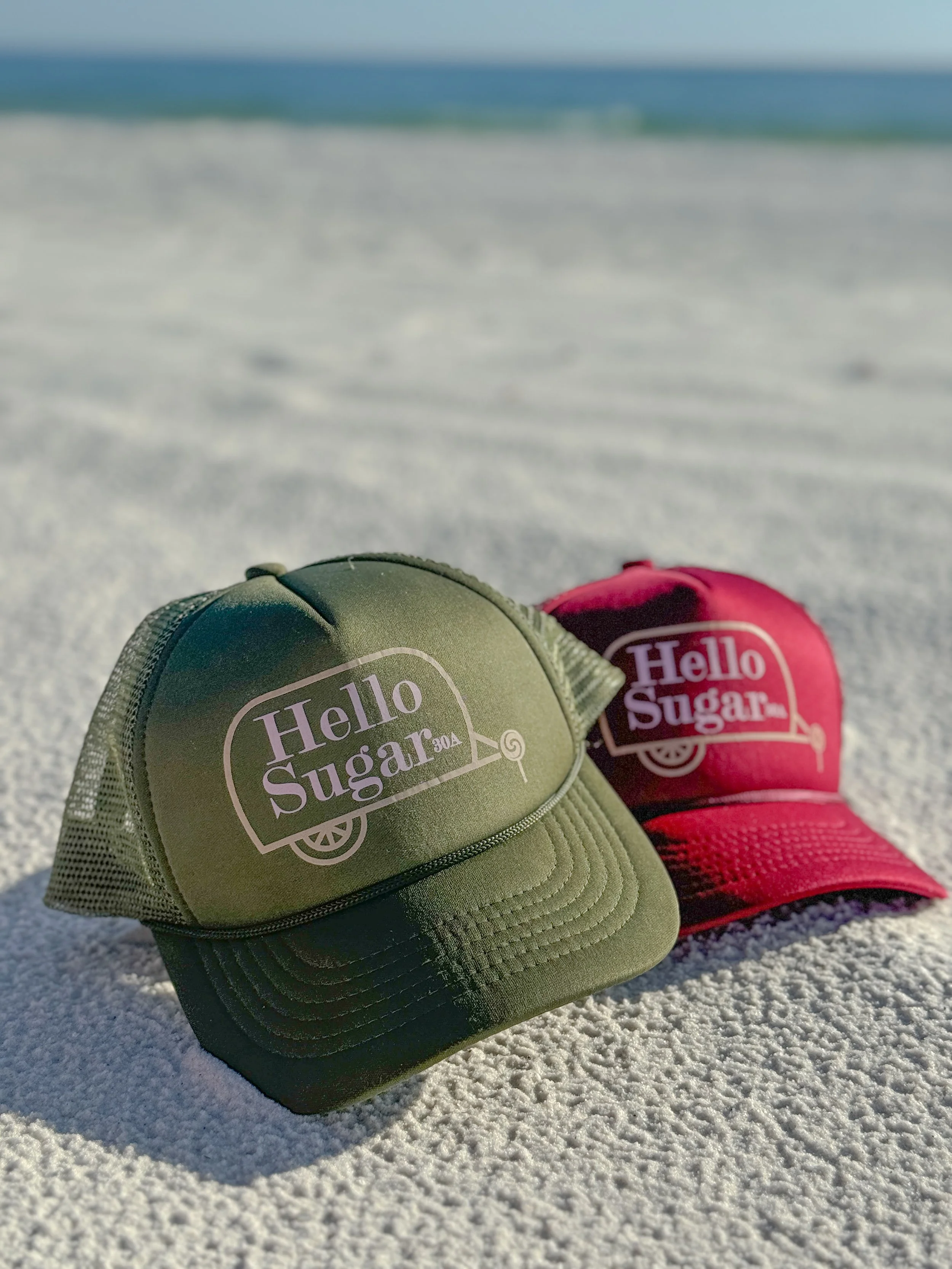 Hello Sugar Trucker Hat Hello Sugar Airstream rental All Inclusive Cotton Candy Event Service Fresh Cotton Candy